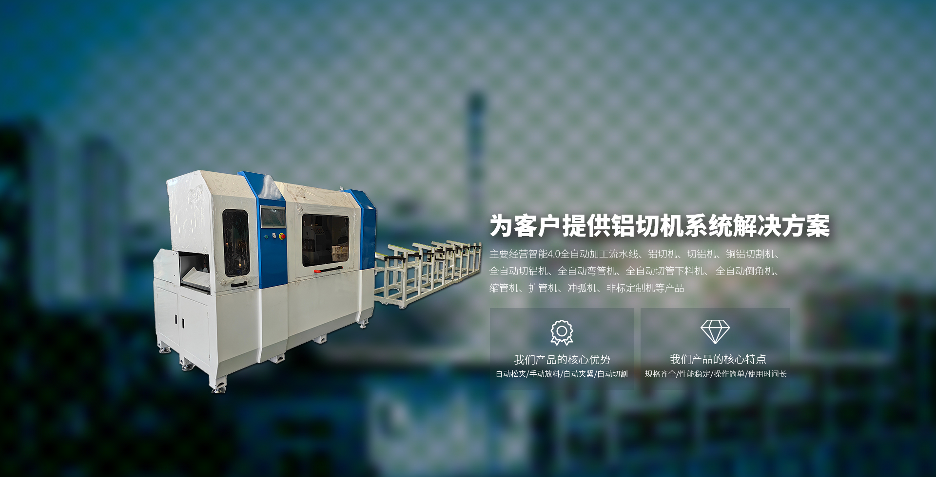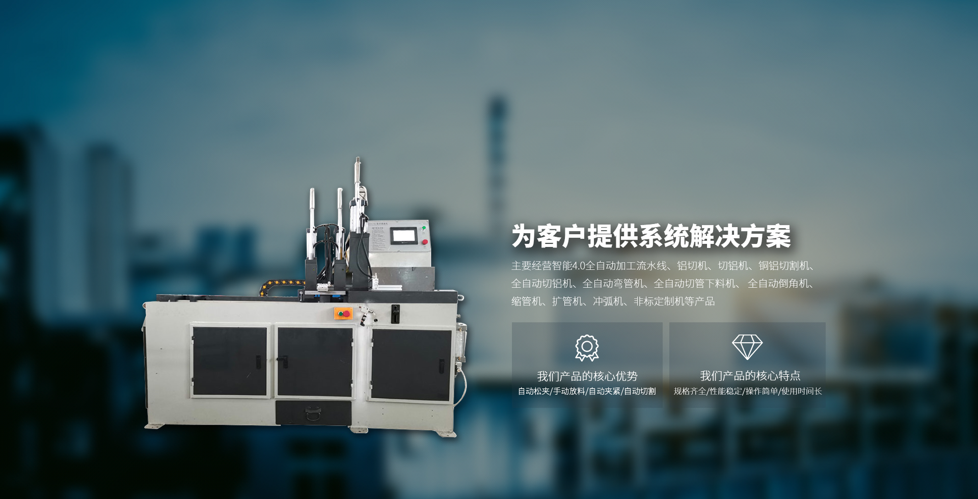 主要經(jīng)營(yíng)智能4.0全自動(dòng)加工流水線(xiàn)、鋁切機(jī)、切鋁機(jī)、銅鋁切割機(jī)、全自動(dòng)切鋁機(jī)、全自動(dòng)彎管機(jī)、全自動(dòng)切管下料機(jī)、 全自動(dòng)倒角機(jī)、縮管機(jī)、擴(kuò)管機(jī)、沖弧機(jī)、非標(biāo)定制機(jī)等產(chǎn)品